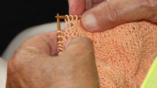 (Der er også mulighed for at strikke strømper, vanter, halstørklæder og kludetæpper, som gives til de, der trænger)